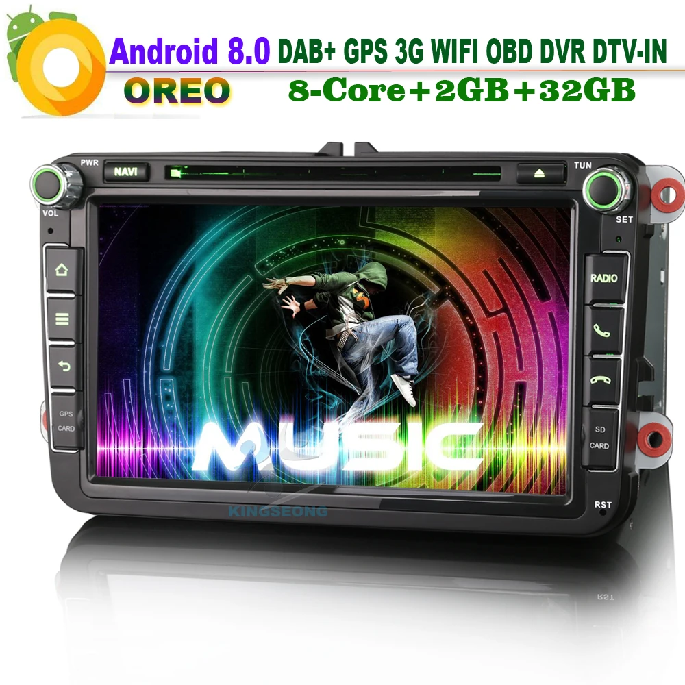 8" DAB+ Android 8.0 Autoradio DVR DTV DVD WiFi 3G OBD GPS Head Unit Radio RDS BT Car GPS Navigation